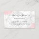 Cartes de visite modernes et élégants pour coiffeurs avec ciseaux faux or, aquarelle rose, texture de marbre blanc et police de calligraphie élégante.
