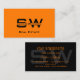 Carte De Visite Élégant clair orange noir simple avec Monogramme