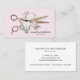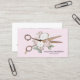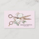 Élégant carte de visite coiffeur. Design avec deux ciseaux de coiffure rose en or , agencement floral blanc & gris et rose vif. Personnalisez avec votre nom et titre sur le devant , et les détails sur le dos. Parfait pour les coiffeurs, coiffeurs, salons de coiffure, etc.
