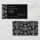 Carte De Visite Elegant Daisy Damask in White on Black Custom