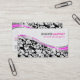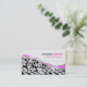 Carte De Visite Élégant Damas Noir & Blanc Avec Accents Rose