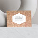 Un emblème hexagone blanc élégant et moderne devient votre logo sur ce modèle design carte de visite moderne. L'image scintillante d'arrière - plan en cuivre procure un intérêt visuel, se prêtant à une variété d'industries et de professions. © 1201AM CREATIVE, LLC