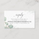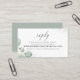 RSVP élégant avec choix de repas. Une carte de boîtier de réponse classique et élégante. Avec des feuilles de verdure d'eucalyptus aquarelle, ce beau design botanique va bien avec n'importe quel thème et décor mariage botanique. Ce design comprend un élégant eucalyptus minimaliste simple, une aquarelle verdoyante enceinte rustique, une botanique via le site choix vert, élégant script de calligraphie, typographie moderne classe, avec feuilles aquarelle feuillage, et eucalyptus nature botanique, insert simple moderne, printemps été automne automne, jardin nature neutre printemps
