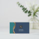 Carte De Visite Elegant Gold Wave Blue Logo Turquoise Code QR