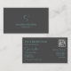 Carte De Visite Élégant gris Turquoise avec Monogramme et QR-Code
