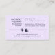 Montrez votre professionnalisme et votre passion pour les animaux avec ce carte de visite élégant, parfait pour les toiletteurs et les spécialistes des soins aux animaux. Le design présente un logo épuré et moderne d'art en ligne d'un chat et d'un chien enfermé dans un cadre circulaire - symbolisant l'harmonie, la confiance et le soin. Créé dans un format SVG clair, ce logo est entièrement modifiable et est livré avec une palette 5 couleurs polyvalente, ce qui facilite la personnalisation de votre marque. Que vous préfériez les pastels doux ou les tonalités audacieuses, cette carte s'adapte parfaitement à votre style. Caractéristiques : ► Unique ligne art chat & chien logo (éditable SVG) ✔ Mise en page moderne pour un look professionnel ✔ Palette de cinq couleurs pour une personnalisation facile ✔ Idéal pour les toiletteurs, salons et services de toilettage mobile ✔ Texte, polices et couleurs entièrement personnalisables dans l’outil de design de Zazzle Imprimer durablement les parents d’animaux avec un carte de visite à la fois adorable et professionnel.