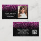 Carte De Visite Elegant Hot Pink Glitter Photo QR Code