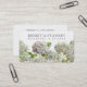 Cet élégant carte de visite floral professionnel dispose d'une floraison lilas et lavande hydrangée avec votre nom au-dessus dans une police classique et votre profession. Le dos de la carte a un arrière - plan blanc avec typographie noire pour votre nom, profession, adresse, téléphone, email et site web. Le carte de visite parfait pour les wedding planners et autres professionnels qui veulent un carte de visite fleuri élégant. Conçu par un artiste de renommée mondiale ©Tim Coffey.