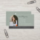 Un carte de visite élégant et professionnel avec une photo voûtée qui fait une grande première impression. Ce design présente votre nom en lettres manuscrites, logo monogramme et titre en lettres de bloc sur un arrière - plan bleu et vert poussiéreux. Modifiez facilement les numéros de contact, les courriels, le site Web et l'adresse pour représenter votre entreprise.