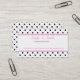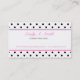 Elégant, mignon, amusant, classique pois B&W, polices et lignes roses cartes de visite. Pour les femmes professionnelles dans l'industrie de la mode, les tissus, le magasin, la vente au détail, les cosmétiques, le service, le salon, les enfants, l'école, la garderie, etc.