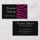Une carte de visite avec un design élégant, classique et élégant, avec imprimé zèbre en noir et rose. Parfait pour un salon de coiffure et de beauté.