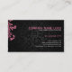Elégant damas floral noir avec tourbillon floral rose, modèle de carte de visite.