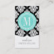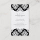 Carte De Visite Elégant noir et blanc Damas Personnalisé