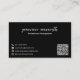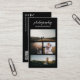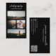 Carte de visite de photographie moderne avec un design simple et minimal avec un collage photo de quatre de vos photos préférées sur un arrière - plan noir. Le dos a votre nom dans un script élégant avec vos coordonnées, icônes de médias sociaux et code QR. Vous pouvez supprimer le code QR et ajouter / modifier les icônes dans l'outil de modification de conception. Ces cartes de visite immoraux sont parfaits pour un photographe mariage.