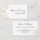 Elégant carte de visite blanc et or avec une fine ligne florale dessinée de part et d'autre. Le design est écrit avec écriture manuscrite et typographie moderne en noir sur blanc. Le modèle est configuré pour vous pour ajouter votre nom, profession, nom de l'entreprise, services et coordonnées commerciales.