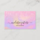 Elégant Parties scintillant Holographique Script maquillage Carte de visite. Un modèle design carte de visite simple et tendance, personnalisez avec vos détails d'affaires pour une carte de contact unique minimale. Comprend une police de signature de script et une disposition de conception moderne.