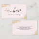 Cartes de visite modernes et élégants pour coiffeurs avec ciseaux et parties scintillant faux or, arrière - plan rose et police calligraphie élégante.