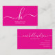 Carte De Visite Elegant Pink White Monogram Initial Script Name
