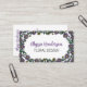 Features a hand drawn floral border with purple and black typography for business name and profession on the front. Black typography for address, phone number, email, website and socials with QR code on the back all on a white background. Perfect for florists, floral designers and other small business.