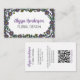Carte De Visite Elegant Purple & White Floral QR Code Florist