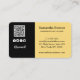 C'est un joli carte de visite moderne avec un script de code QR. Parfait pour les femmes entrepreneurs, les maquilleurs, les salons de beauté, les designers et les artistes indépendants. Carte de visite blanc, noir et jaune pour toute profession avec vos informations sur les médias sociaux sous la forme de votre code QR personnel et, au dos, une photo.