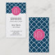 Carte De Visite Élégant Quatrefoil bleu de la marine avec monogram
