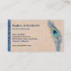 Élégant carte de visite à thème paon avec un beau paon aux plumes vives et à la typographie moderne sur un arrière - plan rustique en burlap. Ajoutez votre nom et vos coordonnées pour faire une première impression durable.