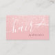 Ce design carte de visite stylisé de coiffure présente une texture de parties scintillant dorée à l'ombre d'un faux rose, des ciseaux et une police calligraphique élégante.