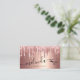 Ce magnifique design carte de visite de coiffure présente des faux rose et cuivre rose or goutte parties scintillant texture métallique, ciseaux et élégante police calligraphie.