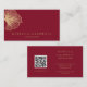 Carte De Visite Élégant Ruby Rouge Floral QR Code