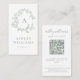 Carte De Visite Élégant Sage Green Monogramme QR Code Floral Crest