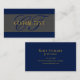 Carte De Visite Élégant Script Monogram Dark Navy Blue Grey & Gold