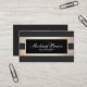 Carte De Visite Élégant Script Monogramme rayé Noir Faux Or