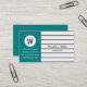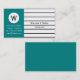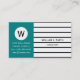 Carte De Visite Élégant Turquoise vert blanc noir rayures Monogram