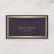 Carte de visite de calligraphie de style vintage classique avec un cadre métallique faux or sur un élégant arrière - plan violet foncé. Facile à personnaliser avec vos détails et généré automatiquement le code QR de numérisation. ++++++++++++++ Convient pour des salons de beauté exclusifs, des boutiques de luxe, des décorateurs, des maquilleurs et des coiffeurs.