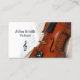 Elegant modern violinist business card with a beautiful closeup photo of a wood violin on the front and minimalist black on white contact information on the back. Perfect for professional musicians and violin teachers.