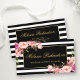Carte De Visite Elégante aquarelle rose floral or noir rayé