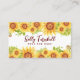 Cette carte de visite moderne et élégante est décorée de tournesols jaune aquarelle. Il ferait un carte de visite idéal pour toute petite entreprise ou service, comme instructeur de yoga, photographe, thérapeute, entraîneur et beaucoup d'autres. Customisez-le avec votre nom d'entreprise, votre nom et vos coordonnées.