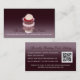 Offrez vos services en tant que pâtissier mariage et créateur avec cet élégant carte de visite de boulangerie avec un délicieux cupcake en velours rouge décoré de givrage tourbillonné et encerclé d'un brin de perles glamour. Personnalisez en ajoutant le nom du décorateur de boulangerie et de gâteaux. Planifiez les consultations de conception de mariage par réponse rapide en ajoutant votre propre code QR de site Web unique à l'arrière. Si vous n'en avez pas, vous pouvez utiliser un générateur de code en ligne.