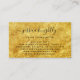 Élégante Calligraphie Script Swash Black Gold Texture Carte de visite. Carte de visite professionnel élégant et élégant avec nom de script de calligraphie sophistiqué avec des swashes en noir sur un arrière - plan de texture or). MODIFICATIONS : Modifiez le style, la couleur, la taille et le placement de la police de texte dans EDIT. ASSISTANCE : Pour obtenir de l'aide sur la modification de la conception, le transfert de la conception à un autre produit ou si vous souhaitez coordonner des éléments, contactez le concepteur AVANT DE COMMANDER via l'onglet MESSAGE Conversation Zazzle ou envoyez un courriel à makeitaboutyoustore@gmail.com.