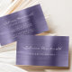 Cette carte de visite moderne élégante présente une image de fond en métal brossé de couleur lavande violet. Personnalisez-la avec votre nom en écriture manuscrite blanche et vos informations professionnelles en police sans empattement blanche. L'image en métal brossé lavande est répétée au verso.