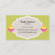 © 2014 Socialite Designs. Élégante bannière design tourbillon décorative et arrière - plan rayé, en carte de visite de boulanger vert,. Le design intègre un design gourmet de cupcake jaune et rose à l'avant et à l'arrière. Tous les éléments de conception peuvent être déplacés, redimensionnés ou supprimés individuellement en customisant le carte de visite.