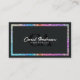 Faites une déclaration sophistiquée avec cet élégant carte de visite ! Le design noir simple est magnifiquement accentué par une bordure en parties scintillant arc-en-ciel, ajoutant une touche de pétillant et de personnalité. Parfait pour les coiffeurs et salons à la recherche d'un look moderne, professionnel, mais glamour. Customisez avec vos détails et laissez briller votre style.
