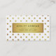 Elégant et mignon Pois Parties scintillant or - Mode et Cartes de visite uniques (La couleur Arrière - plan est changeable). Ce design est parfait pour un maquilleur moderne, massothérapeute, styliste de mode, styliste de cheveux, technicien d'ongles, Beauticien, Cosmetologue, Esthéticien, Coiffeur, Magasin de SPAS, Salon, etc. Tous les styles de texte, couleurs, tailles peuvent être modifiés selon vos besoins. Si vous avez besoin d'une personnalisation, s'il vous plaît contactez-moi.