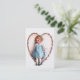 Un carte de visite vintage avec du charme de Valentine comportant une fille timide mignonne avec une lettre d'amour devant un beau coeur de fleur, peint par l'illustrateur américain/créateur publicitaire Ellen Hattie Clapsaddle.