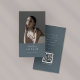 Ce carte de visite photo navy rustique minimaliste bleu roux de la collection Emelia est parfait pour un propriétaire de petite entreprise, consultant, styliste et plus encore! Le design minimaliste présente une typographie simple mais élégante sur ardoise bleu-gris avec un air de sophistication moderne. Personnalisez votre carte de visite avec votre photo et un code QR.