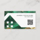 A dedicated QR code area allows clients to quickly access your website, listings, or contact details. The clean and minimal layout keeps the design professional while the emerald and gold elements add a premium and eye-catching touch.