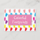 Carte de visite Motif coloré d'empreintes de bébé conçu par Nisha Prabhu. Entièrement Personnalisable. Personnalisez avec vos détails. Le Carte de visite Motif Colorful Baby Footprint est un moyen unique et attrayant de faire une impression mémorable. Ce carte de visite est doté d'un motif ludique aux empreintes colorées de bébé, ajoutant une touche de charme et de personnalité à votre image professionnelle. Les couleurs vives et le design mignon le distinguent des cartes de visite traditionnels, ce qui en fait un excellent point d'entrée de conversation. Que vous soyez propriétaire de garderie, propriétaire de boutique pour enfants ou que vous souhaitiez simplement ajouter une touche de créativité à votre carte de visite, le Carte de visite Motif Colorful Baby Footprint est un choix fantastique.