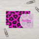 Carte de visite avec design empreinte de léopard rose. Cette carte est prête pour la personnalisation avec vos informations professionnelles. Tout le texte peut être modifié : modifiez le style, les couleurs, les tailles, ajoutez ou supprimez des champs de texte selon vos besoins. Si vous avez besoin d'aide, envoyez un courriel à Kirsty sur kirsty_pargeter@yahoo.co.uk