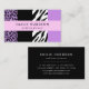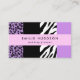 Cartes de visite élégants, élégants et sophistiqués avec motif léopard et zèbre de couleur violette. Design moderne et tendance, parfait pour les amateurs de poster de animal.